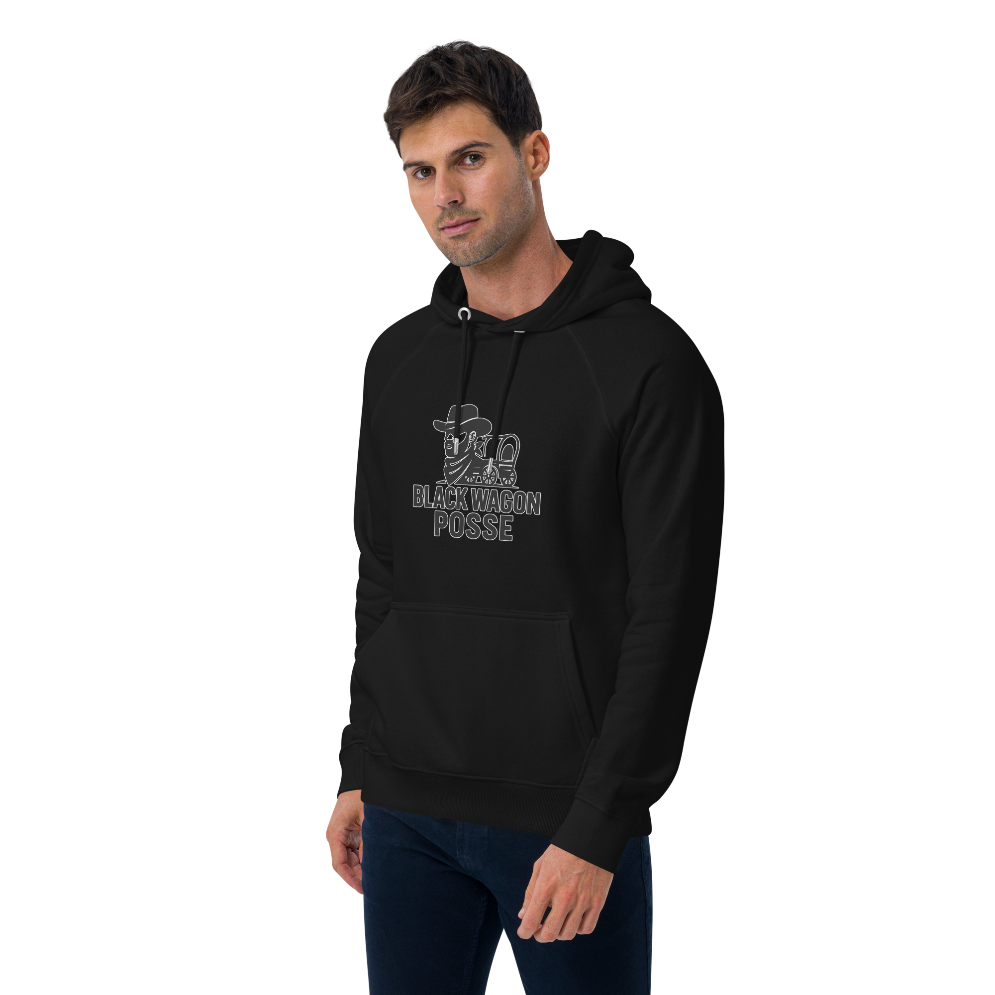 Black Wagon Posse – Unisex eco raglan hoodie